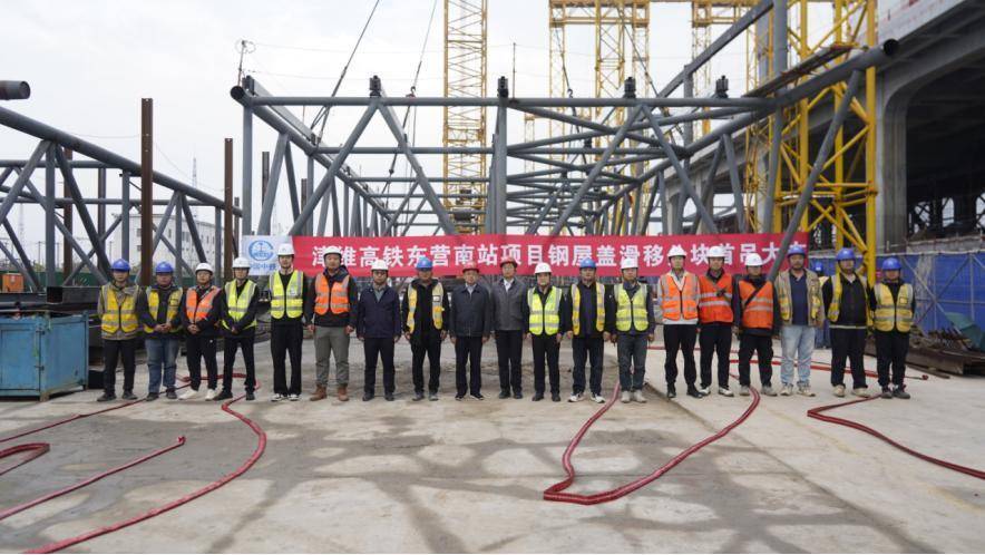 近日,随着重达52吨的首榀钢桁架平稳落位滑移轨道指定位置,国内首例铁路站房屋面全系统滑移工程——天津至潍坊高铁东营南站钢屋盖滑移施工顺利完成首吊作业,标志着该项目迈入实质性施工阶段。