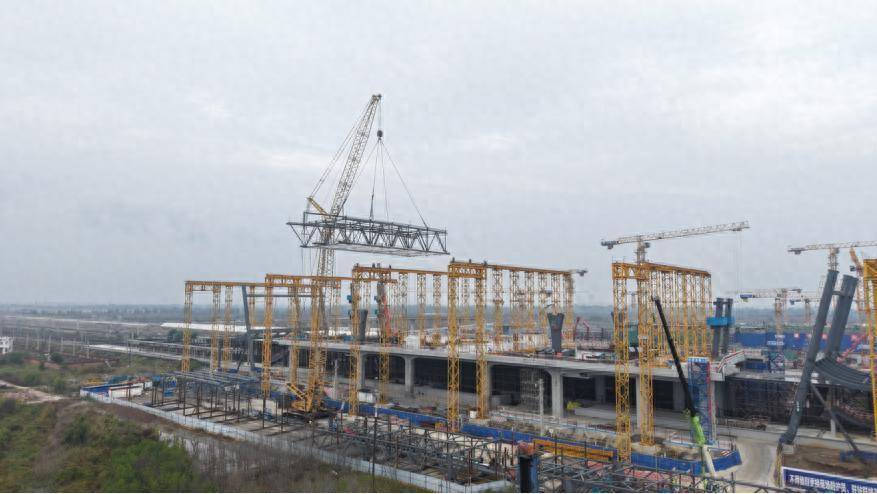 “本次首吊作业采用350吨履带吊将52吨首榀钢桁架平稳迁移至指定位置。滑移过程中应用了Tekla等智慧建造技术,确保钢屋盖精准就位。”项目总工陈祥仕表示。该项技术不仅实现了安全跨线作业,还将施工工期提前20至30天,为目前国内铁路站房施工中的首创。